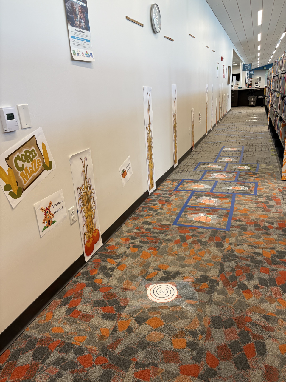 I created this dramatic play area for the library. I am a librarian. I got real pumpkins, brown fabric, and green bulletin board paper that I cut and twisted into vines. I used...