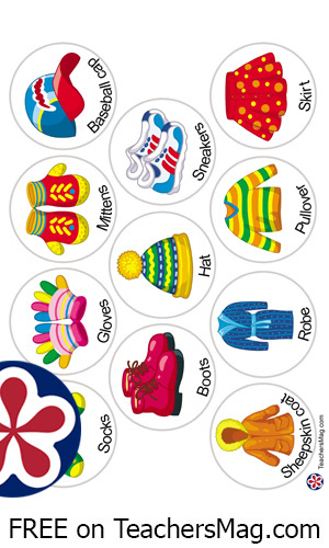 You can combine these cards with large clothing pictures. The set of 13 sheets with clothing pictures designed specifically for preschool activities.