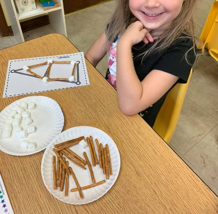 Constellation. Over at the U Are U Preschool they did the constellation activity by building the constellations out of marshmallows (as the stars) and pretzel sticks (as the lines between the stars) to model the same stars you see at night but with a tasty snack!