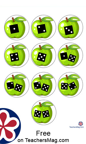 In preschool and kindergarten after kids can identify numbers and count sets we can focus-in on different ways to represent the same number. Doing so will help strengthen number sense skills. Using these printable math mats we can show how to represent a number with seeds, hands holding-up fingers, numerals, and dice illustrating the numbers. Use them for your apple-themed activities!
