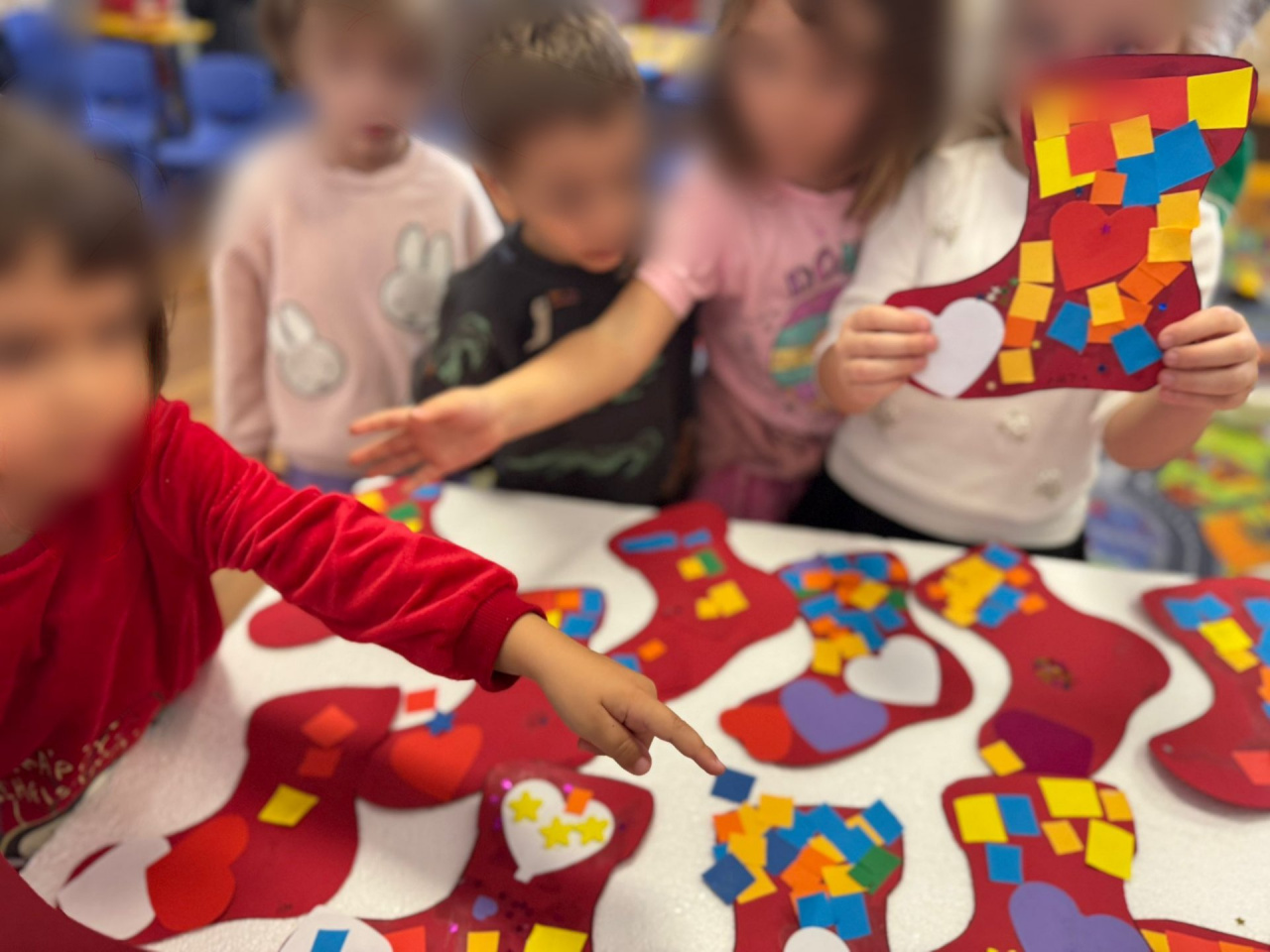 While waiting for Santa Nicholas (moș Nicolae, the preschoolers spent a beautiful week, full of emotion and joy. The week began with a creative activity, in which the children enthusiastically decorated booties. Another activity consisted of a conversation about Santa Nicholas, about booties and about the surprises they could receive. The preschoolers cleaned and prepared their shoes while waiting for Santa Nicholas and were extremely happy when they saw what they received from him.